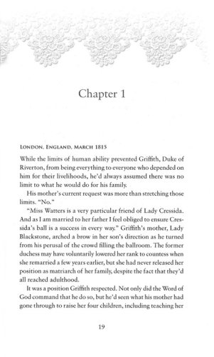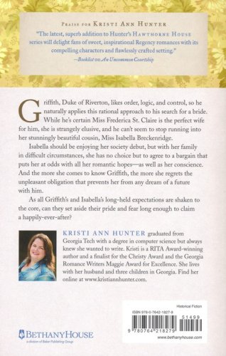 Griffith, Duke of Riverton, likes order, logic, and control, and he naturally applies this rational approach to his search for a bride. He's certain Miss Frederica St. Claire is the perfect wife for him, but while Frederica is strangely elusive, he can't seem to stop running into her stunningly beautiful cousin, Miss Isabella Breckenridge.