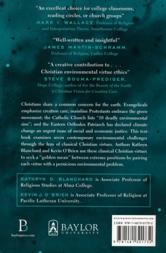 Christians share a common concern for the earth. Evangelicals emphasize creation care; mainline Protestants embrace the green movement; the Catholic Church lists '10 deadly environmental sins,' and the Eastern Orthodox Patriarch has declared climate change an urgent issue of social and economic justice. An Introduction to Christian Environmentalism is a textbook that examines seven contemporary environmental challenges through the lens of classical Christian virtues. Authors Kathryn Blachard and Kevin O'Brien use these classical Christian virtues to seek a 'golden mean' between extreme positions by pairing each virtue with a pernicious environmental problem.