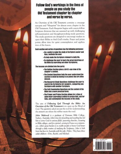 Follow God's workings in the lives of people as you study the Old Testament chapter by chapter and verse by verse.An Overview of the Old Testament contains a one-page synopsis and "blueprint" for almost every chapter in the Old testament. Each blueprint begins with easy-to-follow Scripture divisions that are summed up with challenging self-examination and though-provoking study questions. The study questions are designed to encourage readers to open their Bibles to find God's truths. Prayer and praise points allow time for quiet contemplation of the lesson.