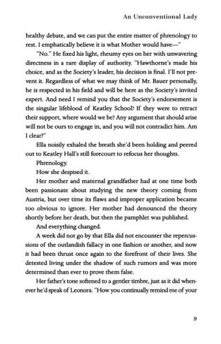 Now, renowned phrenologist Thomas Bauer is about to arrive at Keatley Hall to speak at the Natural Philosophers' Society gathering, and Ella embraces the opportunity to clear her mother's name–and her own–once and for all. And her partner in crime? None other than her childhood friend Gabriel Rowe, who's grown into an ambitious, handsome London solicitor.