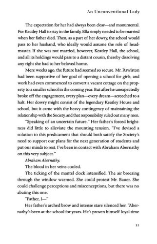 Charming and headstrong, Ella Wilde always knew she was different than other women. Thanks to her unorthodox upbringing as the daughter of Keatley Hall School for Young Men's headmaster, Ella has long dreamed of opening a school for girls that would meet the needs of inquisitive, brilliant, unconventional young women just like her–girls who longed for the education exclusively reserved for boys. But there's just one catch: Unless she marries before her father dies, Keatley Hall will pass into the hands of a distant cousin. In that case, Ella will be left destitute, and at this point her only option appears to be an undesirable marriage.