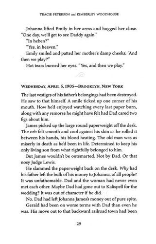 Widowed for three years, Johanna devotes all her time to a demanding toddler, an injured father, and a successful millinery business. After the loss of her husband, she desires to move on, but reconnecting with her past love leaves her unsure of what lies ahead. Both committed to God's distinct calling on their lives, Johanna and Parker struggle to see how their futures can unite, and when strange things start happening around town, their second chance at a life together seems more unlikely than ever.