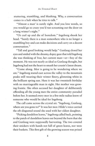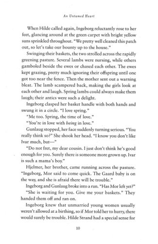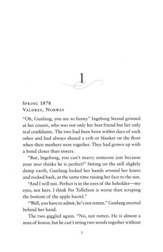 It isn't long before she meets Roald Bjorklund, a widower who has been planning to go to America for some time, lured by the promise of free land. He's a good man, a hard-working man–and he has a young son who desperately needs a mother. He's clearly interested in Ingeborg, but is he the answer to her prayers? And what about love? This isn't how she's always imagined it.