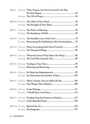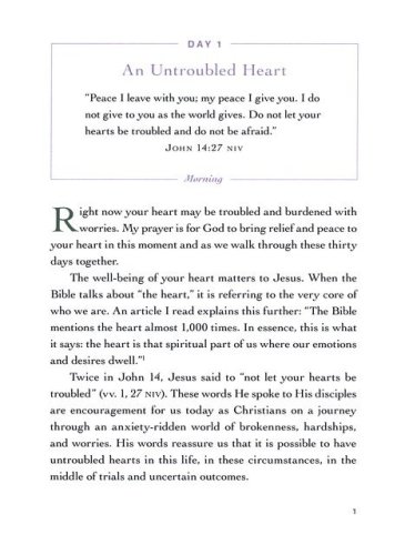 Begin your day in God's comforting presence and end your day in His calming embrace. This unique 30-day devotional reminds you that God is greater than your troubled heart and more present than your anxious thoughts.