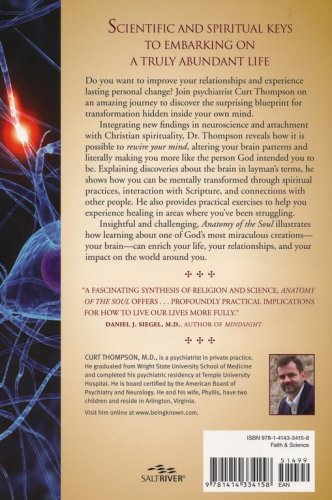Do you want to improve your relationships and experience lasting personal change? Join Curt Thompson, M.D., on an amazing journey to discover the surprising pathways for transformation hidden inside your own mind. Integrating new findings in neuroscience and attachment with Christian spirituality, Dr. Thompson reveals how it is possible to rewire your mind, altering your brain patterns and literally making you more like the person God intended you to be. Explaining discoveries about the brain in layman’s terms, he shows how you can be mentally transformed through spiritual practices, interaction with Scripture, and connections with other people. He also provides practical exercises to help you experience healing in areas where you’ve been struggling. Insightful and challenging, Anatomy of the Soul illustrates how learning about one of God’s most miraculous creations—your brain—can enrich your life, your relationships, and your impact on the world around you.