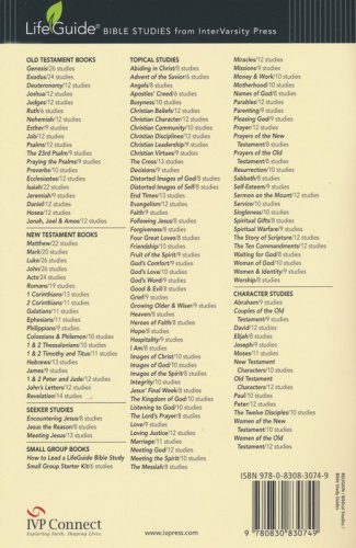 Do angels really have wings? Do they protect people from harm? Can people become angels after death? Misconceptions about angels abound–in books, in movies and on talk shows. In this eight-session LifeGuide ® Bible Study, Douglas Connelly explores with you what the Bible really says about angels, including their service to God and their ministry to people. For over three decades LifeGuide Bible Studies have provided solid biblical content and raised thought-provoking questions—making for a one-of-a-kind Bible study experience for individuals and groups. This series has more than 130 titles on Old and New Testament books, character studies, and topical studies.