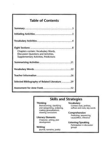 This Novel Units Teacher Guide is for the book Anne Frank: Diary of a Young Girl, and accompanies the Novel Units Anne Frank Student Packet.