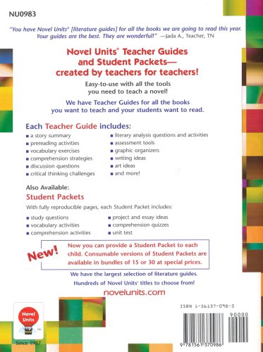 Including a number of teacher's helps, exercises, discussion questions, assessment tools, graphic organizers, writing and art ideas, critical thinking challenges, extension activities, glossary and more, this is a convenient guide to facilitating discussion. Background information includes a summary of the book, information about the author and ideas for initiating activity; the discussion questions follow the chapters in the book. Page numbers are included, which reference the edition quoted in the front cover. [Classic Pocket Book Paperback Edition].