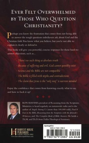 Many arguments from atheists, agnostics, and skeptics are difficult, or at least intimidating, for most Christians to answer. With clear reasoning and understandable language Ron Rhodes provides readers with the explanations and scriptural background they need to respond to common arguments against faith including: