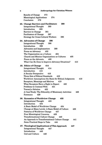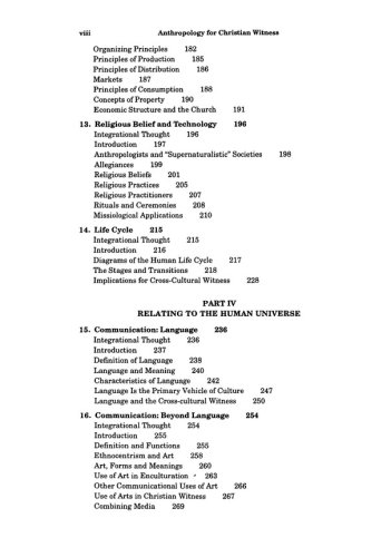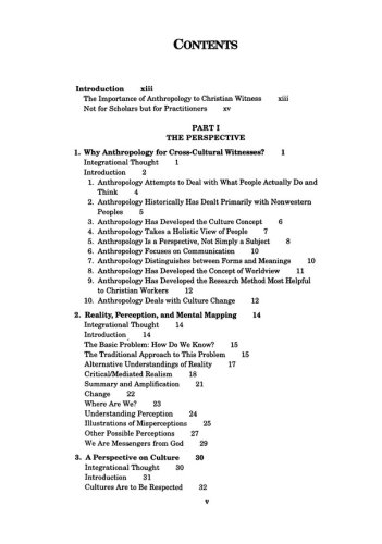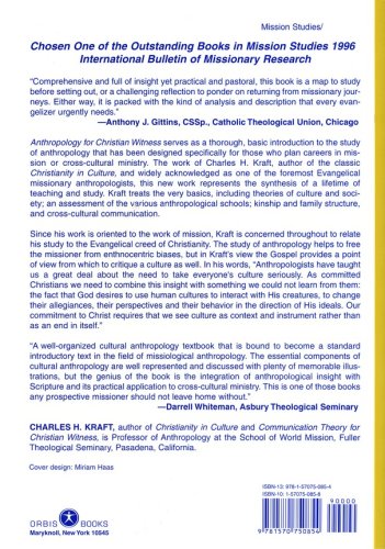 This book is a thorough, basic introduction to the study of anthropology for those who plan careers in mission or cross-cultural ministry. This new work of Charles H. Kraft, represents the synthesis of a lifetime of teaching and study. Kraft treats the very basics, including theories of culture and society; an assessment of the various anthropological schools; kinship and family structure, and communication of culture, and discusses these things in relation to Christian values.