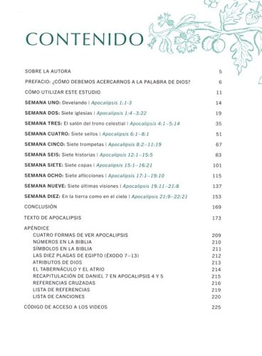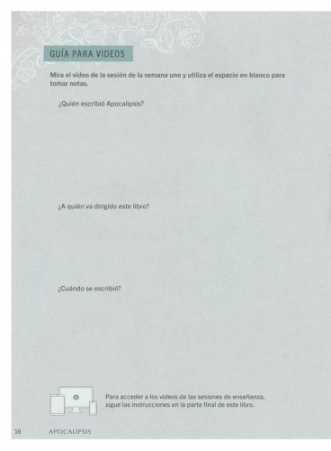 Estudio verso por verso del libro de Apocalipsis. 10 sesiones de enseñanza en video que desglosan las verdades encontradas a lo largo del estudio y ofrecen ideas adicionales, disponibles mediante un código de canje impreso en el libro de estudio bíblico. 9 semanas de estudio personal con preguntas esclarecedoras para ayudarte a concentrarte y entender las Escrituras. Incluye el texto completo de Apocalipsis. Apéndice con ayudas para la interpretación y estudio adicional. Ayudas para líderes en la discusión grupal. Beneficios: Aprende a leer y comprender el lenguaje y los símbolos de la escritura apocalíptica. Pasa de estar confundido a estar confiado, de ansioso a seguro, y de intimidado a inspirado al estudiar los últimos tiempos. Entiende Apocalipsis como la culminación de la gran historia de Dios. Recorre el libro verso por verso, de principio a fin. Sesiones en video:Introducción: Antes de comenzar (04:56): En este video introductorio, Jen describe su metodología de estudio bíblico y lo que puedes esperar de su enfoque en el libro de Apocalipsis. Mira este video con tu grupo o por tu cuenta antes de comenzar tu estudio. Video adicional: Una palabra para los líderes de grupo (03:53): Si estás liderando un grupo de estudio bíblico o facilitando la discusión sobre Apocalipsis, no te pierdas este video dirigido especialmente a los líderes. Semana Uno: Revelación (59:57): En esta introducción al estudio, Jen da una visión general y proporciona información de fondo sobre el libro de Apocalipsis y repasa Apocalipsis 1:1-3. También explica el género de la literatura apocalíptica y el papel importante que desempeña el Antiguo Testamento en la comprensión de la visión de Juan. Semana Dos: Siete Iglesias (51:18): Jen repasa Apocalipsis 1:4–3:22, la visión de Juan del Hijo del Hombre y las cartas a las siete iglesias en Asia Menor. Estos versículos nos alientan a nosotros y a la iglesia hoy a mantenernos firmes en nuestra fe, ya que Jesús está gobernando y reinando desde Su trono. Semana Tres: La Sala del Trono Celestial (45:25): En este video, Jen enseña Apocalipsis 4-5, la visión de Juan de la sala del trono celestial. Usando pasajes de toda la Escritura, Jen ayuda a comprender la escena que Juan observa y la realidad celestial a la que podemos aferrarnos con seguridad y esperanza. Semana Cuatro: Siete Sellos (41:20): A medida que continuamos a través del libro de Apocalipsis, Jen enseña sobre Apocalipsis 6:1–8:1, los siete sellos de juicio que se derraman sobre la tierra. Consideraremos cómo esta escena de la ira de Dios derramándose sobre la tierra puede fortalecer nuestra fe en el Señor y nuestra perseverancia hasta el final. Semana Cinco: Siete Trompetas (49:44): Este video presenta la enseñanza de Jen sobre Apocalipsis 8:2–11:19, que cubre los siete juicios de las trompetas. Como explica Jen, estos capítulos nos animan a recordar que Dios es paciente, justo y fiel a todas las generaciones. Semana Seis: Siete Historias (50:04): Apocalipsis 12:1–15:5, que Jen enseña en este video, cubre siete instantáneas de la visión de Juan. Estos capítulos ofrecen un vistazo a la interacción entre las realidades celestiales y terrenales, proporcionando un ancla de ánimo para los hijos de Dios en cada época. Semana Siete: Siete Copas (40:10): En esta enseñanza, Jen cubre Apocalipsis 15:1–16:21, los juicios de las siete copas. Estas escenas sirven como un recordatorio de que el amor de Dios por los santos requiere Su justicia contra Sus enemigos. Semana Ocho: Siete Palabras de Aye (49:56): Mientras Jen enseña sobre Apocalipsis 17:1–19:10, siete mensajes que describen la caída del reino de la tierra, se nos recuerda que esperamos una ciudad mejor: el reino eterno de Dios. Semana Nueve: Siete Últimas Visiones (56:00): Con esta enseñanza, Jen se acerca al final de Apocalipsis y de la gran historia de Dios. Apocalipsis 19:11–21:8 describe la desaparición final del enemigo y la celebración de la novia de Cristo en toda su gloria. Semana Diez: En la Tierra como en el Cielo (39:19): Jen cierra su estudio sobre Apocalipsis con Apocalipsis 21:9–22:21. Esta imagen final de la visión de Juan es un estímulo para nosotros hacia la perseverancia y la esperanza.