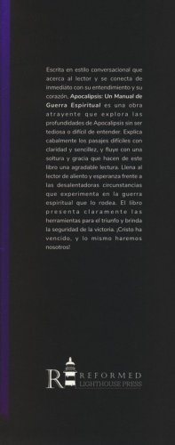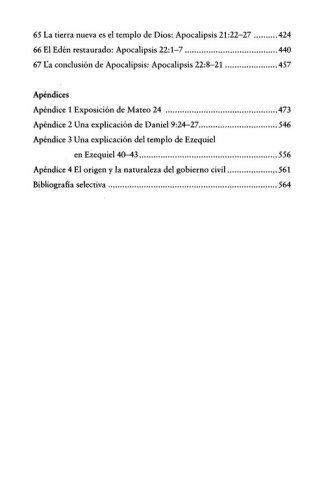Este libro está diseñado para pastores que necesitan ayuda para comprender, exponer y aplicar el libro de Apocalipsis a sus congregaciones desde el púlpito. Los bosquejos incluidos en cada capítulo, la claridad y completitud de la exposición de cada versículo y las aplicaciones proporcionadas serán una valiosa ayuda en la preparación del mensaje. La introducción proporciona una explicación ampliada del enfoque interpretativo necesario para comprender correctamente el libro. El cuerpo de la obra contiene una exposición completa de Apocalipsis y Daniel 2 y 7. Los cuatro apéndices contienen una exposición de Mateo 24, Daniel 9, Ezequiel 40-43 y la fuente y naturaleza del gobierno civil.