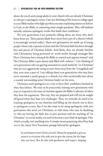engage confidently with non-Christians with guidance from a diverse group of seasoned apologists converse biblically and effectively on pressing issues including the mental health crisis, contemporary critical theory, deconstruction, gender narratives, and more learn practical skills for defending the faith online, teaching apologetics to the next generation, doing apologetics in the church, and helping people through doubt