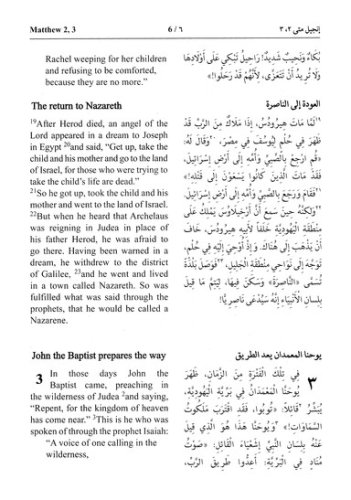A side-by-side New Testament of the bestselling New International Version (NIV) in English and the New Arabic Version (NAV), the most popular contemporary translation in the Middle East.