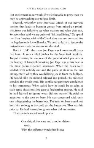 Have you ever felt a little bored, tired, or stressed about your life and even your faith? Haven’t we all? This "world weariness" can happen to anyone. Yet Jesus came that we might have exciting, joyful, abundant life! The question is… how? In Are You Fired Up or Burned Out? best-selling author James W. Moore explains how to move from fatigue to favor. In short, encouraging, and practical chapters, you will learn how to Recognize-Remember-Relax: Recognize your fatigue limit Remember your priorities Relax your soul in God Today's busy world may bring a tiredness that can settle on the human spirit. Struggling through hectic, frenzied, stressful lives, we scrape and scramble toward something that leaves us…empty…and feeling cheated, let down, and bone weary. God doesn’t want it to be that way for us. Find out how, with His help, you can stay excited, exhilarated, fulfilled, and truly fired up about life.