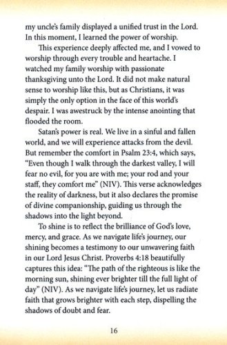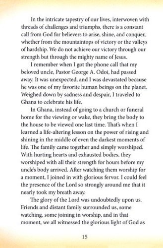 In Arise, Shine, and Conquer, Myshel Wilkins reminds us that, though we may fall, our knees are the perfect place to come to God in prayer. It is in our surrender that we receive the power of the Holy Spirit, equipping us with tools of faith to battle Satan’s arrows. This book will help you
