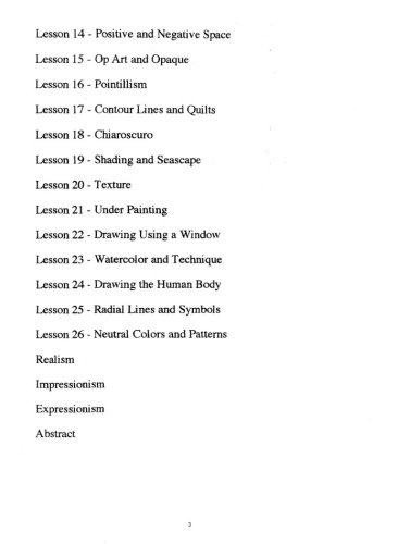 Suggested art supplies (not-included): pencils, drawing paper, charcoal, oil pastels, tempera paints, water colors, and chalk pastels.
