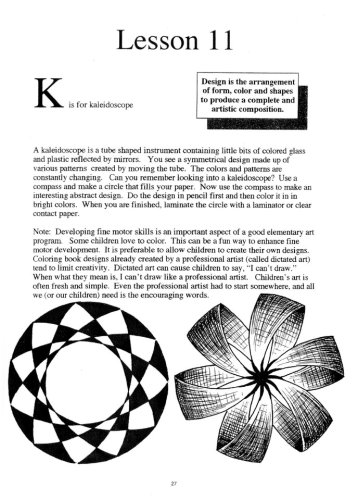 Introduce children to the basics of art with this Visual Manna resource from Rich and Sharon Jeffus. Art Basics for Children presents the "ABCs" of art with alphabet based lessons that teach children how to draw an apple for A, and a Ball for B. Each lesson is paired with an art principle such as shading and the color wheel, circles and patterns, lines, transparent/opaque, monochrome, texture, pointillism, neutral colors and patterns, and more. Art supplies are also introduced and there is a 7-page drawing exercise section focused on basic shapes.