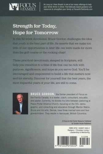 In this 52-week devotional, Bruce Gordon challenges the idea that youth is the best part of life. He asserts that we make too little of our opportunities in later life—we were made for more than the golf course or the rocking chair!