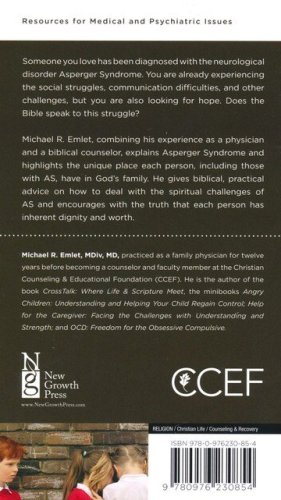 Michael R. Emlet, combining his experience as a physician and a biblical counselor, explains Asperger syndrome and highlights the unique place each person, including those with AS, has in God's family. He gives biblical, practical advice on how to deal with the spiritual challenges of AS and encourages with the truth that each person has inherent dignity and worth.