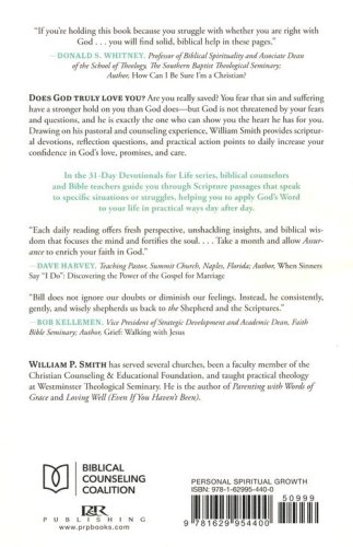 Does God truly love you? Are you really saved? Lack of assurance in the Christian walk comes from fearing that sin and suffering have a stronger hold on you than God does. Yet ultimately these are fleeting problems. Your doubts can’t be resolved simply with new or better information, such as clever arguments or evidences for your faith. Instead, you must look to God to grow in confidence of his heart for you. As your Maker, Redeemer, and Sustainer, he is not threatened by your fears and questions but graciously answers them. A pastor experienced in counseling those who struggle with assurance of salvation, William Smith brings hope and help in this month-long devotional. Using meditations on God’s Word, reflection questions, and practical suggestions for action, Smith draws on the promises of Scripture to assure you of God’s love and care.