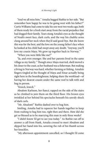 Maya Bredesen and her husband plan to journey from Norway to a new life at her cousin's boardinghouse in America, but on one last fateful fishing trip, a fierce winter storm steals away her husband. With her dreams for the future crushed, Maya is left grieving on the voyage to Iowa, accompanied instead by her brother, who plans to finish his seminary degree.