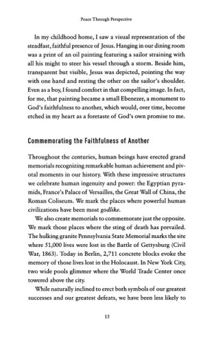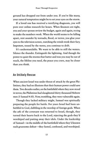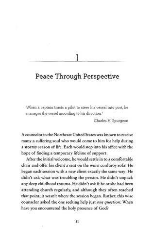 "Here's the rub about faith. Sure, prayer often changes outward things, but the only guaranteed miracle God offers us is inner peace, the peace of Christ. A peace so crazy deep that it cannot be analyzed or understood. It descends on us even when everything else is falling apart, while the drug-addicted child does not come to his senses, or the job offer doesn't pan out, or the cancer rages and the marriage is a hollow mess. But I'll let you in on a secret. This miracle of the 'inner variety,' this inexplicable and supernatural calm in the storm, is the greatest miracle you'll ever experience."