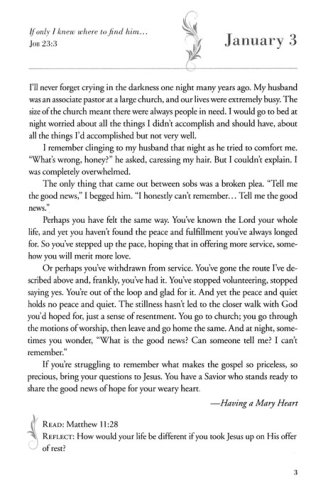 For anyone who struggles when it comes to daily devotions, At the Feet of Jesus extends an irresistible invitation to set aside your duties and find the amazing peace and incredible joy that come from time alone with Him. Drawn from Joanna Weaver’s beloved Bethany trilogy, each reading in this 365-day devotional includes a Bible reading passage and reflection question. All-new material and "Going Deeper" sidebars are also woven throughout.