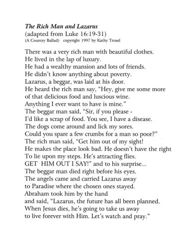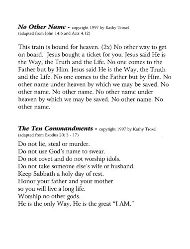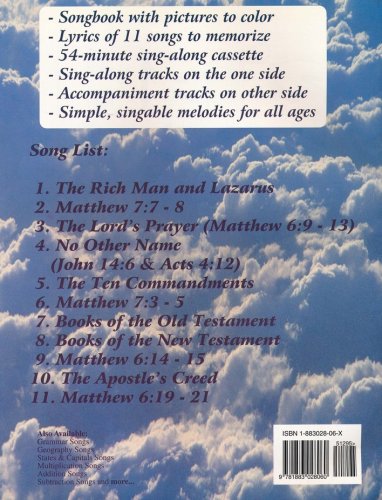 Bible Songs features 11 songs that cover the "Rich Man and Lazarus," The Lord's Prayer, Books of the OT and NT, The Apostle's Creed, Matthew 6:19-21, and others. Each track is repeated with music-only, allowing for students to self-test.