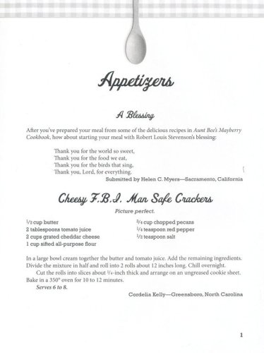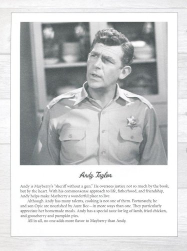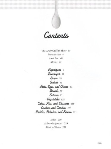 Betty’s Breakfast Grits Casserole Crooner’s Shrimp Creole Barney’s Hot Plate Chili Helen’s Honor Rolls Aunt Bee’s Fried Chicken Opie’s Carrot-Top Cake Thelma Lou’s Very Chocolate Cheesecake, and so much more!
