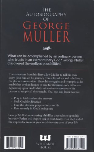 These excerpts from his diary allow Müller to tell his own story. Join him on his journey from a life of sin and rebellion to his glorious conversion. Share his struggles and triumphs as he establishes orphan homes to care for thousands of English children, depending on God’s response to his prayer of faith to supply all things. You will learn how to:Pray in faith and receive answersSeek God for directionFind the ultimate purpose for your lifeRest in God’s loving care George Müller’s unwavering, childlike dependence upon his heavenly Father will inspire you to confidently trust the God of the impossible in every area of your life.