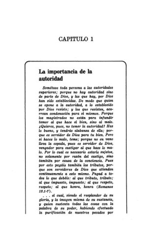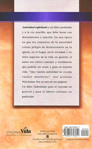Éste es un libro profundo y a la vez sencillo, que debe leerse con detenimiento y oración. En una época en que los cimientos de la autoridad corren peligro de desmoronarse en la iglesia, en el hogar, en la sociedad y en otros aspectos de la vida en general, el autor nos ofrece consejos y enseñanzas que podrán ser norte y guía en nuestra vida. "Que vuestra autoridad no exceda vuestro ministerio", nos aconseja Watchman Nee en una de sus páginas.