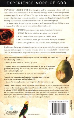 Perhaps you've been missing out. God has given us five senses and a brain with two sides. Yet we often approach God in one way only: through words that are analyzed and processed logically in our left brain. The right brain, however, is the creative, intuitive center–the place that connects most to our seeing, smelling, touching, tasting and hearing, and that roots experiences in our hearts in transforming ways. In Awaken Your Senses, longtime ministers Beth Booram and Brent Bill invite you to engage your right brain in your faith through sensory spiritual practices that position your heart for divine encounter. Readings and a variety of exercises that utilize your whole body lead you to experience God in new ways by tasting chocolate, words, matzoh, Scripture, forgiveness seeing the moon, wisdom, art, glory, your best self touching others, stones, prayers, rubble, Jesus hearing silence, music, pain, footsteps, the Spirit, the news smelling gardenias, life, salty air, home, healing oil, coffee Teaching you to pay attention in love to your surroundings, Booram and Bill will help you open your eyes and ears and nose to a sensuous faith–one in which God can be experienced each day as we live and move and have our being. So whether you're weary, stuck, struggling, growing or on information-overload, the exercises and reflections offered here can bring refreshment–a cold drink of water, a gentle breeze–to your soul. Come experience God with all of who you are, and discover more of who he is.