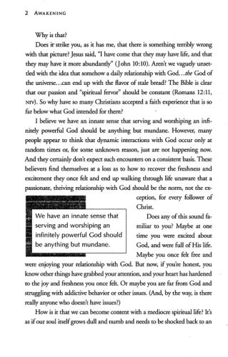 Included in Awakening is a 21-Day Plan that will guide you through the principles that ensure a lasting, fresh relationship with God—even in a world where everything quickly becomes stale.
