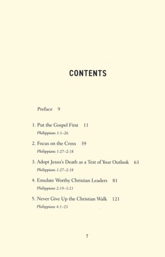 Christians taking their first steps of faith, as well as experienced believers reexamining their spiritual foundations, will find wisdom in this study of Philippians and the disciplines of the Christian life. They'll be encouraged to let the cross shape their outlook on suffering, emulate worthy Christian role models, persevere by developing seven virtues, and put the gospel first in all aspects of life.