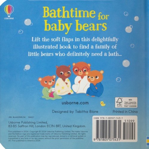 It's bathtime in the bear household… but the little bears aren't quite ready for it! Behind each fluffy flap in this cute book you'll find a mischievous bear cub making a great big mess… before all the bears are revealed together in the bath on the last page. With adorable illustrations and lots of fun surprises, this is a perfect book to share with babies and toddlers.