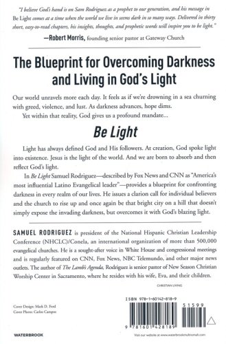 In Be Light Samuel Rodriguez—described by Fox News and CNN as "America’s most influential Latino Evangelical leader"—provides a blueprint for confronting darkness in every realm of our lives. He issues a clarion call for individual believers and the church to rise up and once again be that bright city on a hill that doesn’t simply expose the invading darkness, but overcomes it with God’s blazing light.