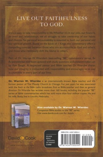 Part of Dr. Warren W. Wiersbe’s best-selling "BE" commentary series, BE Responsible has now been updated with study questions and a new introduction by Ken Baugh. A respected pastor and Bible teacher, Dr. Wiersbe shares how our integrity is connected with responsibility, and encourages us to stay accountable in each part of our lives.