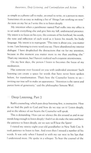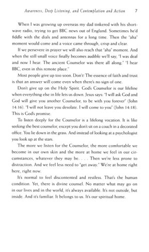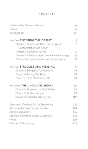 Part One, "Entering the Desert," introduces the reader to principles of awareness, deep listening, and contemplation as essential for "hearing" what Scripture has to say. Part Two details the importance of mystery and struggle in the process of healing from any past or present wounds. And Part Three explores the "undivided heart" that is possible when we come to know God in silence and stillness.