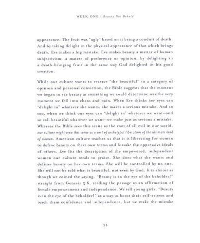 Beauty Not Beheld equips women to discern the subtle lies about identity and beauty that permeate our current cultural climate and replace them with biblical truths about who we are and who we were made to be. In an effort to speak the truth in love, Beauty Not Beheld gently challenges readers to expose our culture's distortion of the central message of the gospel in the self-love movement and instead embrace the true gospel that will set us free and lead to a thriving sense of self.