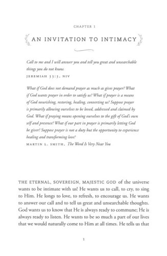 So often we think of prayer as something we do to break through to God – to get His attention and to get Him to listen to us. But intimacy with God is His idea. He has taken the initiative, and prayer is His gift to us. It is an opportunity for us to respond to His invitation to intimacy by calling, crying, and singing to Him. Prayer is our response to the One who has called out to us and desires to be in a relationship with us.