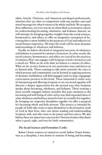 How does Christian formation happen and what are its moral implications? This book brings into conversation three disciplines that are crucial for Christian formation–social science, biblical studies/hermeneutics, and ethics–to present a cohesive, dynamic vision of human wholeness and spiritual holiness. The authors weave together insights from their respective fields to address the relationship between personal and communal formation, moral development, and the interpretation of Scripture. Revealing the process as well as the fruits of interdisciplinary dialogue, this book offers a fresh approach to understanding human formation. The final chapter, a case study on immigration, demonstrates the authors' integrative method.