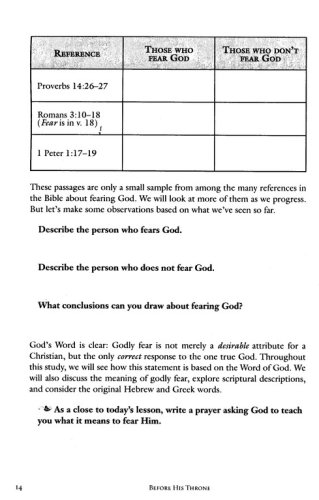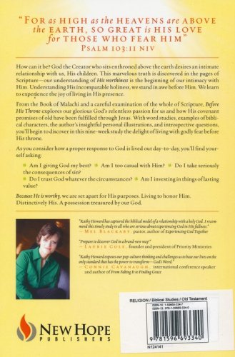 Before His Throne explores the Book of Malachi to find the meaning and relevance of approaching God with godly fear. This nine-week interactive Bible study challenges Christians to examine their hearts and move toward a deeper and more effective relationship with God, who is both Father and Lord. Christians participating in this study will gain increased knowledge of the Book of Malachi and be challenged in life application as they draw upon the combined commentary, illustrations, questions, and activities found in Before His Throne.