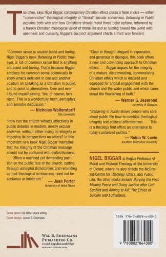Too often, says Nigel Biggar, contemporary Christian ethics poses a false choice — either "conservative" theological integrity or "liberal" secular consensus. Behaving in Public explains both why and how Christians should resist these polar options. Informed by a frankly Christian theological vision of moral life and so turning toward the world with openness and curiosity, Biggar's succinct argument charts a third way forward.