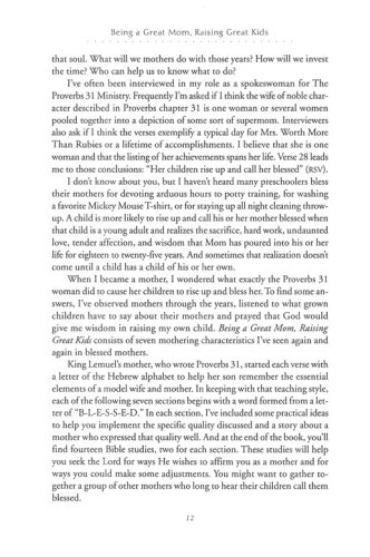 Be B.L.E.S.S.E.D.! That is what Sharon Jaynes teaches as she focuses on being a Proverbs 31 mother. Today's over-committed, harried housewives and mothers sorely need practical suggestions and loving encouragement. Don't go it alone. You need a friend who has been there. Sharon Jaynes is the friend you've been looking for. Her heart is warm and her wisdom is straightforward.