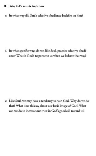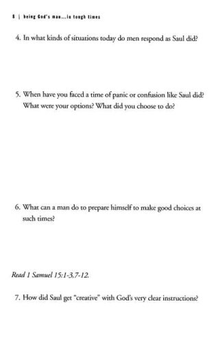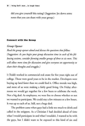 Being God's Man…in Tough Times will equip you to respond to life's difficulties in the power and wisdom of God. Nine sessions of Bible study questions, "real life" case studies, and group discussion questions facilitate personal encounters with God and other men in this practical study. A leader's section is included.