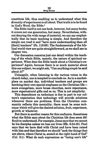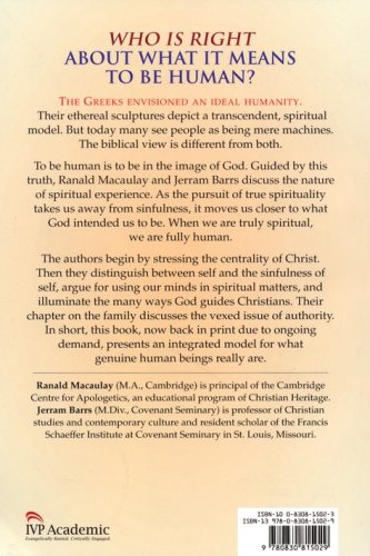 Who is right about what it means to be human? The Greeks envisioned an ideal humanity. Their ethereal sculptures depict a transcendent, spiritual model. But today many scientists view human beings as mere machines. And some believe we will be able to make machines with human-like intelligence in the near future. The biblical view of humanity is different from both of these. For the writers of Scripture, to be human is to be in the image of God. Guided by this view, Ranald Macaulay and Jerram Barrs discuss the nature of spiritual experience. As the pursuit of true spirituality takes us away from sinfulness, it moves us closer to what God intended us to be. When we are truly spiritual, we are fully human. Macauley and Barrs begin by stressing the centrality of Christ. Then they distinguish between self and the sinfulness of self, argue for using our minds in spiritual matters, and illuminate the many ways God guides us. Their chapter on the family discusses the vexed issue of authority. And they conclude with a look at the evidence, judgment, hope, joy and reward of faith. In short, this book, now back in print due to ongoing demand, presents an integrated model for what human beings really are.