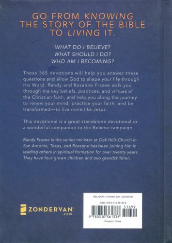 Let God guide you in thinking, acting, and becoming like Jesus through these 365 powerful devotions. Randy and Rozanne Frazee walk you through the key beliefs, practices, and virtues of the Christian faith, and help you along the journey to renew your mind, practice your faith, and be transformed—to live more like Jesus.