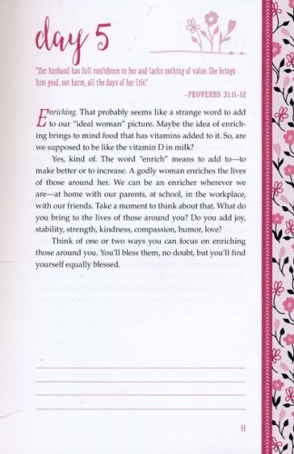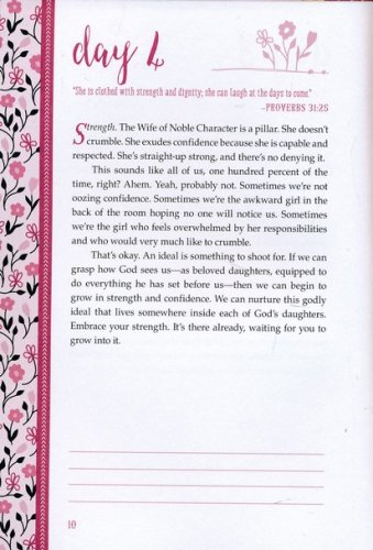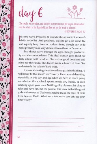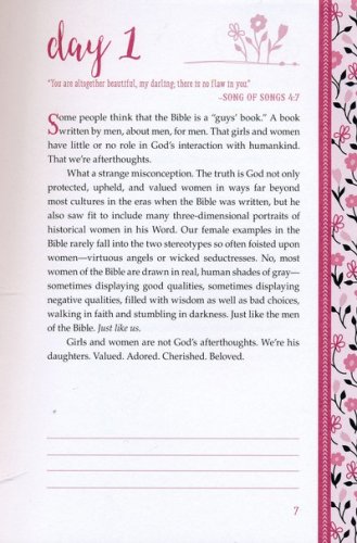 A relevant devotion paired with a Scripture verse about a biblical woman you can look to for wisdom and inspirationJournaling space to help you reflect on the day’s messageContent that speaks to the pressures and changes girls like you are facing right now, giving you real-world applications to find God in your heart and keeping him at the forefront of your life.