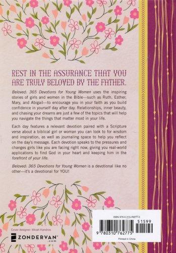 Honest, poignant, and sometimes humorous, Beloved: 365 Devotions for Young Women uses the inspiring stories of girls and women in the Bible—such as Ruth, Esther, Mary, and Abigail—and ample journaling space to help you build confidence and express yourself day after day.